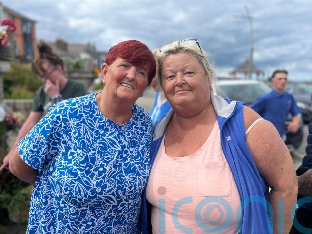 Michelle Buckley and Geraldine Canning came to lay flowers at the memorial on Monday evening.