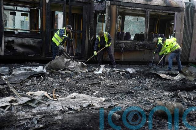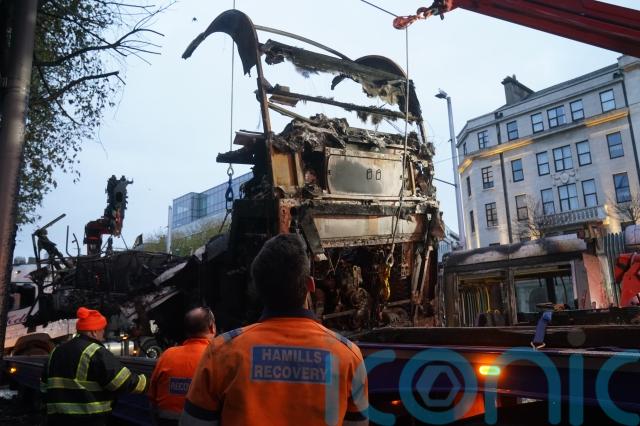 The clean-up continued on Dublin’s thoroughfare O’Connell Street throughout Friday, with burned-out buses lifted away by cranes while broken glass and missiles were cleared.