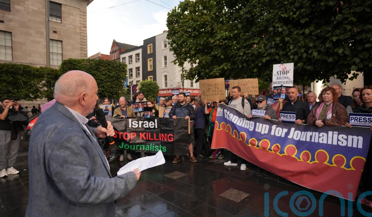 A vigil is being held at the Spire on Dublin’s O’Connell Street in solidarity with journalists in Gaza.