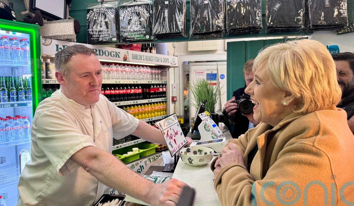 She also spent some time on Friday out and about campaigning in Howth Harbour in north Dublin where she sampled some chips from Leo Burdock’s, the iconic fish and chip shop.She was joined by Fianna Fail’s Darragh O’Brien TD who said he is supporting her in a “personal capacity”.