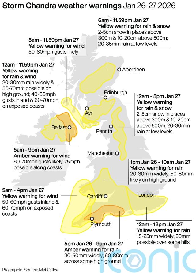 Met Eireann forecaster Matthew Martin said that Storm Chandra would continue to track northwards on Tuesday and the weather would remain “unsettled” for the rest of the week.