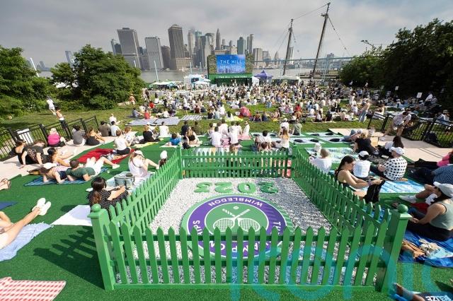 Tennis fans gathered across the Atlantic at The Hill in New York, in Brooklyn Bridge Park, to watch the men’s final, a day after Spice Girl Melanie C lit the city’s Empire State Building in Wimbledon colours of purple, green and white.