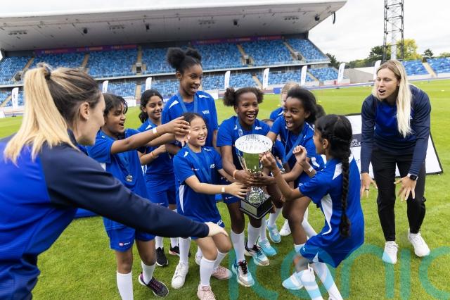 In a bid to make women’s football more visible, particularly in schools, Campbell and Czech Republic and Chelsea midfielder Katerina Svitkova joined more than 100 schoolgirls at Alexander Stadium in Birmingham on Tuesday to inspire the next generation of children to play football.