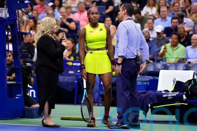 Coco Gauff reached her first US Open final but her achievement was overshadowed by environmental protesters who forced her last-four match against Karolina Muchova to be suspended for more than 45 minutes.