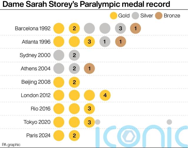 30 – Paralympic medals for Dame Sarah Storey after her two golds in Paris. Storey has won gold in all 14 Paralympic cycling events she has ever entered.