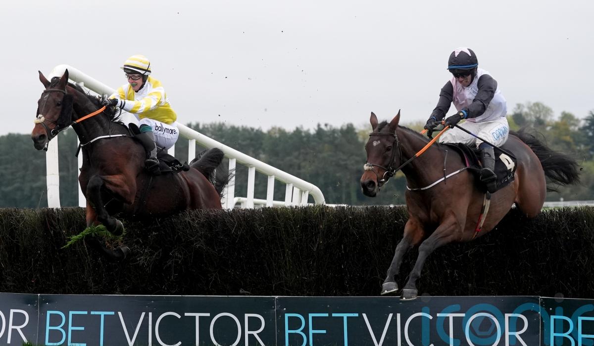 With Darragh O’Keeffe in the saddle for his reappearance, Heart Wood tracked Monbeg Park into the home straight and there was little to choose between the pair before De Bromhead’s charge winged the final fence and landed running, asserting late on to prevail by a length and three-quarters.