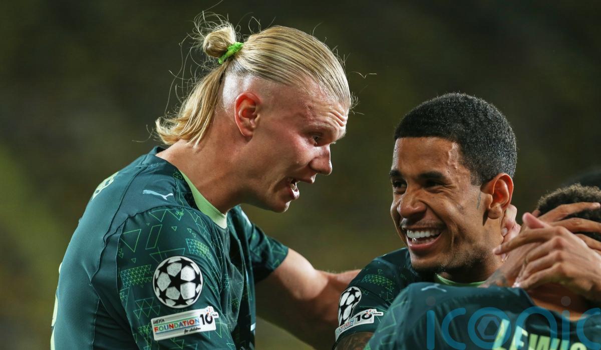 Jeremy Doku could have opened the scoring inside the first minute but shot tamely at goalkeeper Luiz Junior and Haaland headed wide.