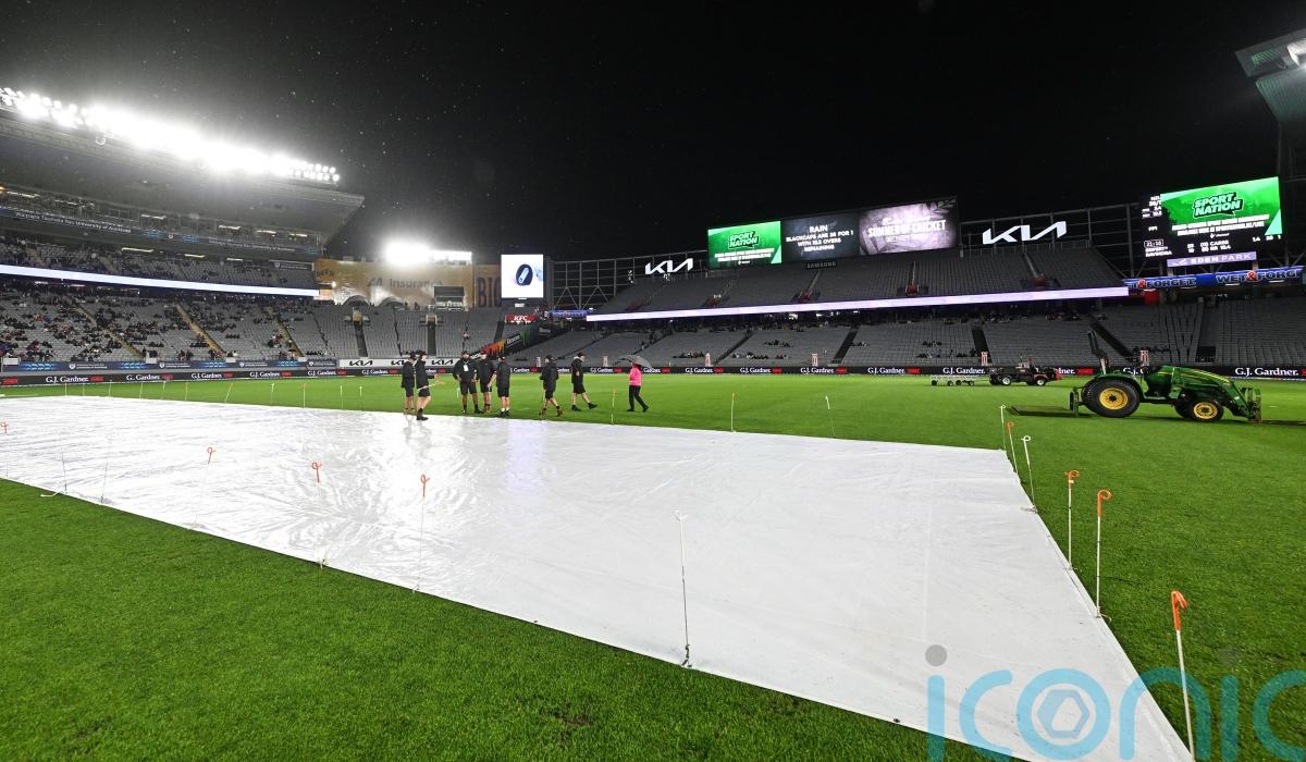 The players were first forced off the field after just three deliveries, with the Black Caps on eight without loss having been asked to bat first, as a downpour at Eden Park led to a 90-minute delay.