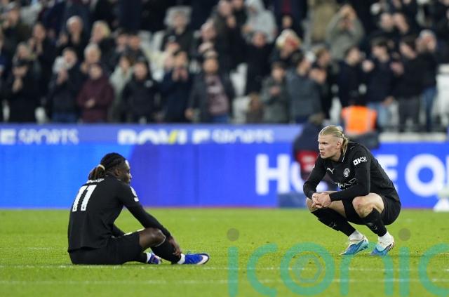 Manchester City’s title bid was left in tatters after a 1-1 draw at relegation-threatened West Ham left them nine points behind leaders Arsenal.