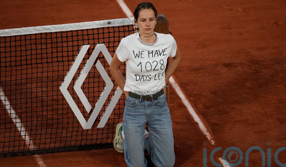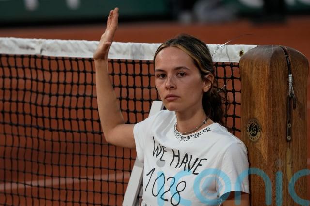 A French Tennis Federation statement read: “At 9.12 pm, an environmental activist managed to get onto Philippe-Chatrier court and attached herself to the net with metal wires and glue.