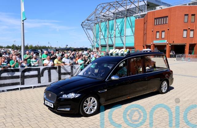 The funeral cortege later made the short journey to Celtic Park where supporters paid tribute to Hughes, who died earlier this month at the age of 79 after a short illness.