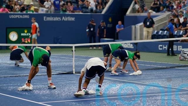 Humidity levels were high and the sky was darkening but officials delayed closing the roof on Louis Armstrong Stadium as heavy spits began to fall, meaning a lengthy break while the court was dried.